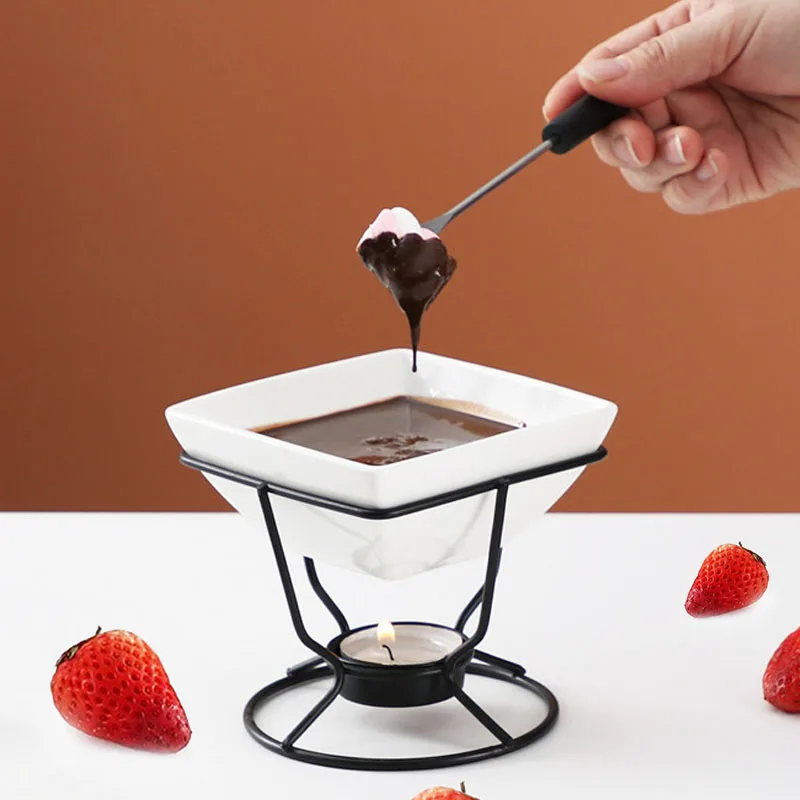 Diy conjunto de fondue de chocolate cerâmica manteiga aquecedores com