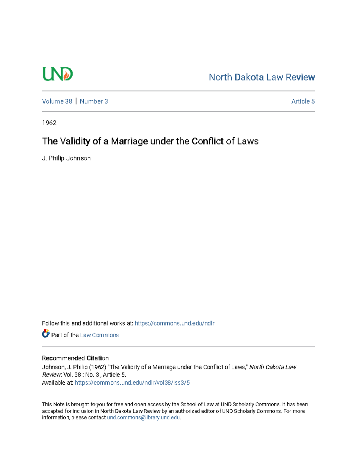 Validity of Marriage under Conflict of Laws North Dakota Law