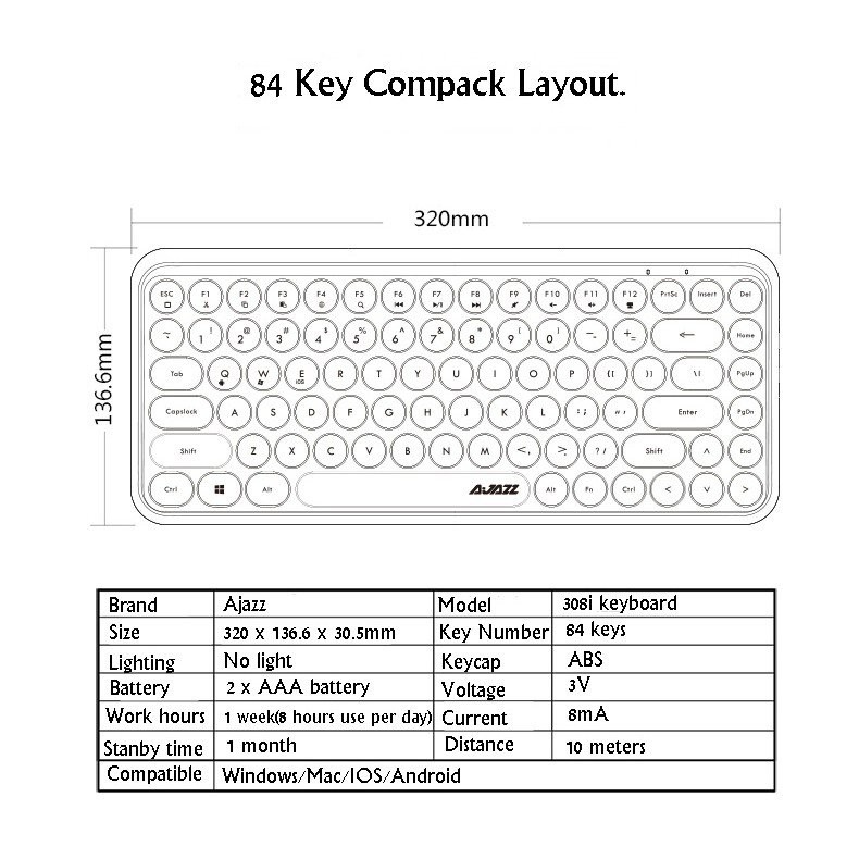 Ajazz 308i Bluetooth 3.0 Wireless Keyboard 84 Classic Round Keys Ajazz 308I Keyboard Manual Pdf I put the batteries in and the. Just press fn+c to turn on bt (the red light flashes), and the keyboard will adjust its layout to automatically match each device, regardless of its keyboard is. Turn on the bluetooth in your device3. How to pair the keyboard to your device:1. Heyyy, i’m back with another “how to use” video!! Really. Ajazz 308I Keyboard Manual Pdf.