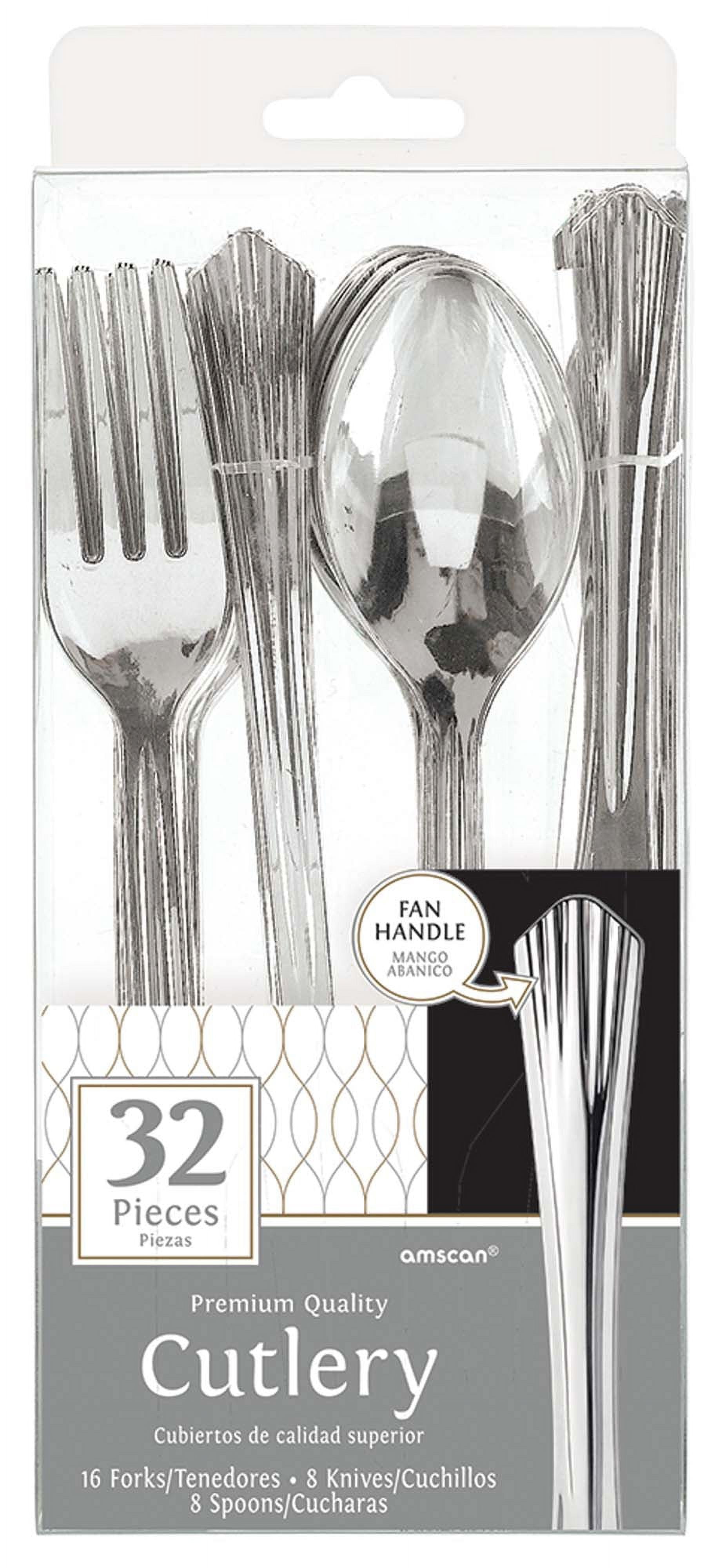 Premium Plastic Silver Forks Knives Spoons 32 Ct Fan Handle Cutlery Plastic Silver Forks Knives Spoons buy full size extra heavy plastic silver cutlery spoons,knives,forks, 24/pk from walmart canada. our premium plastic silverware features the glimmering silver tint with glossy design that reflect the elegance of advanced flatware. Includes 50 silver color plastic forks, 50 silver color plastic knives, and 50 silver color plastic spoons. Plastic Silver Forks Knives Spoons.
