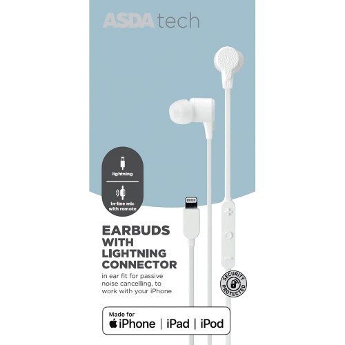 ASDA Tech Lightning Connector Earphones White Compare Prices & Where To Buy Trolley.co.uk