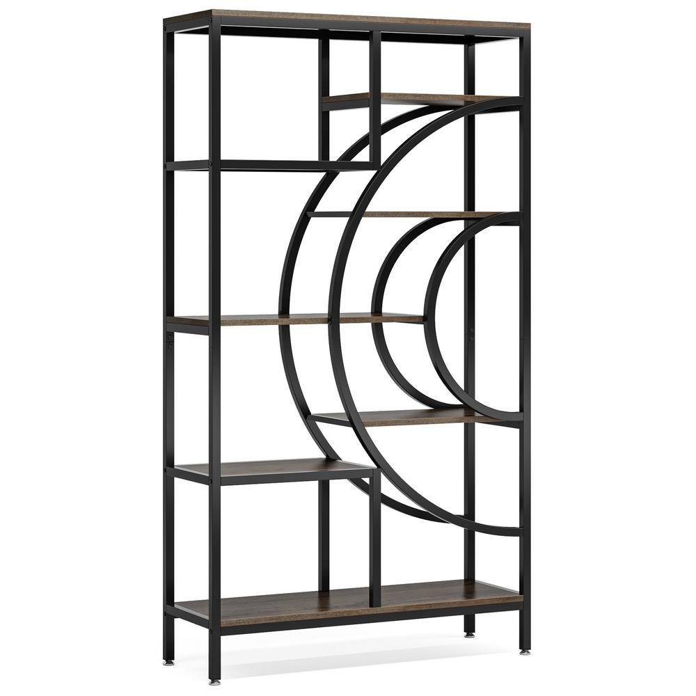 BYBLIGHT Eulas 70.47 in. Tall Grey and Black Wood 7Shelf Staggered