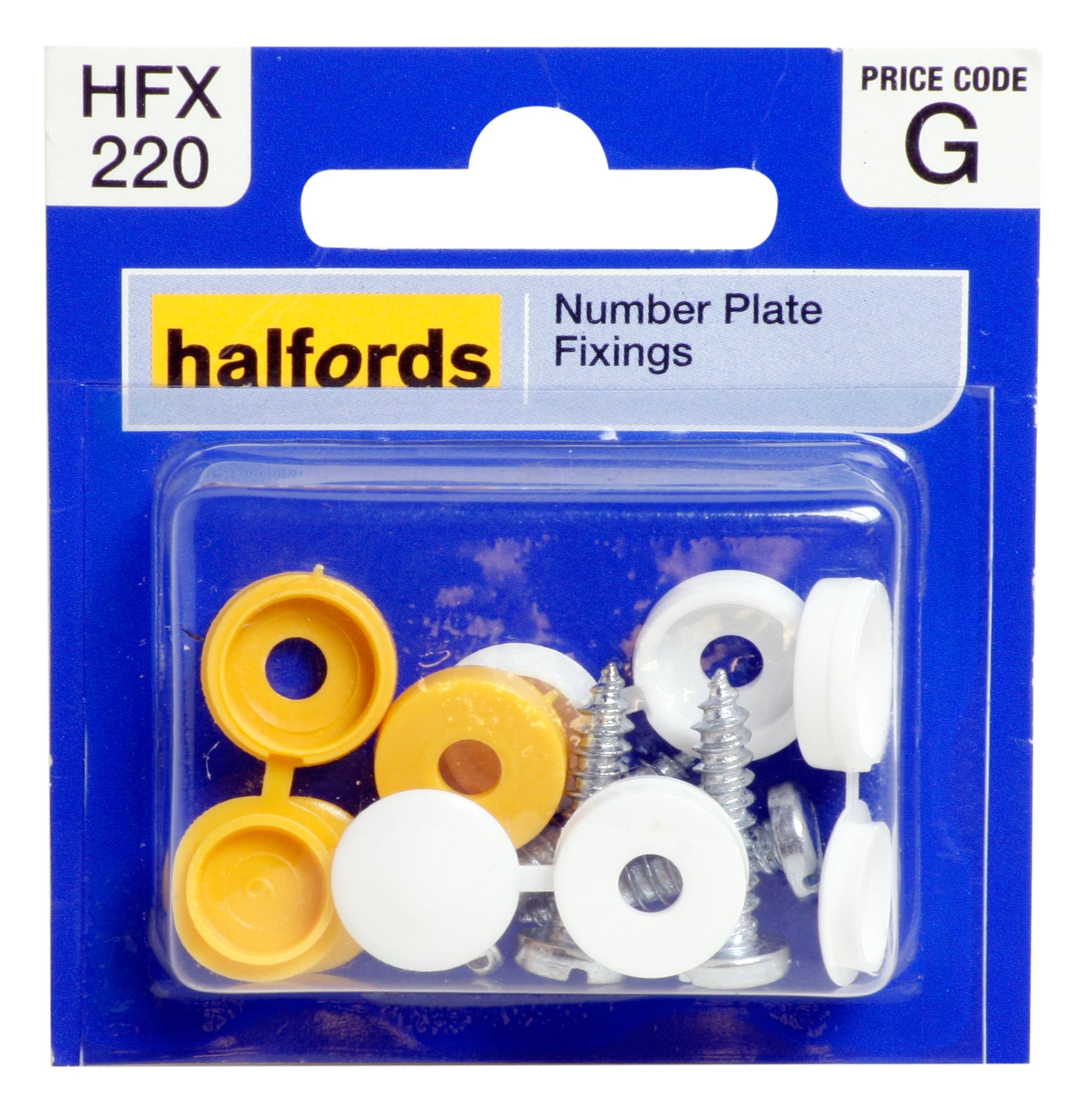 Halfords HFX680 Caps 50 Pieces Yellow Plastic Registration Number Plate Halfords Number Plate Screws And Caps Number plate screws & caps. We have a range of number plate fixings, screws and screw caps suitable for uk and european number plates. It is against the law to drive with broken or missing number plates, so if something happens to yours, it's vital that you get them fixed. Pack contains 5 caps & 4 screws; For direct mounting. Halfords Number Plate Screws And Caps.