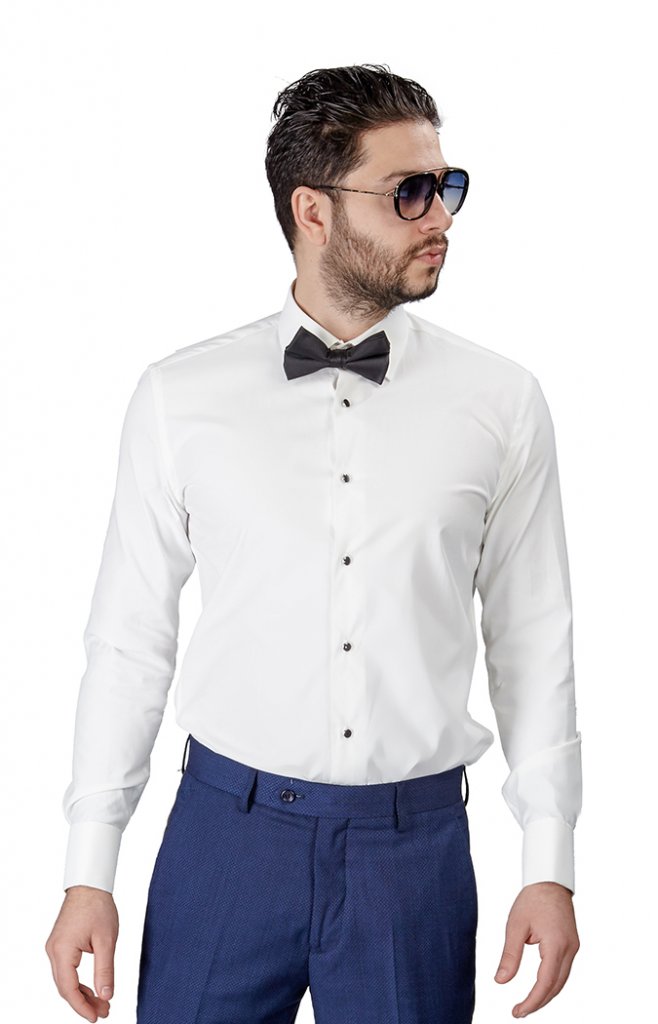 Slim Fit Ivory Spread Collar French Cuff Tuxedo Shirt ÃZARMAN