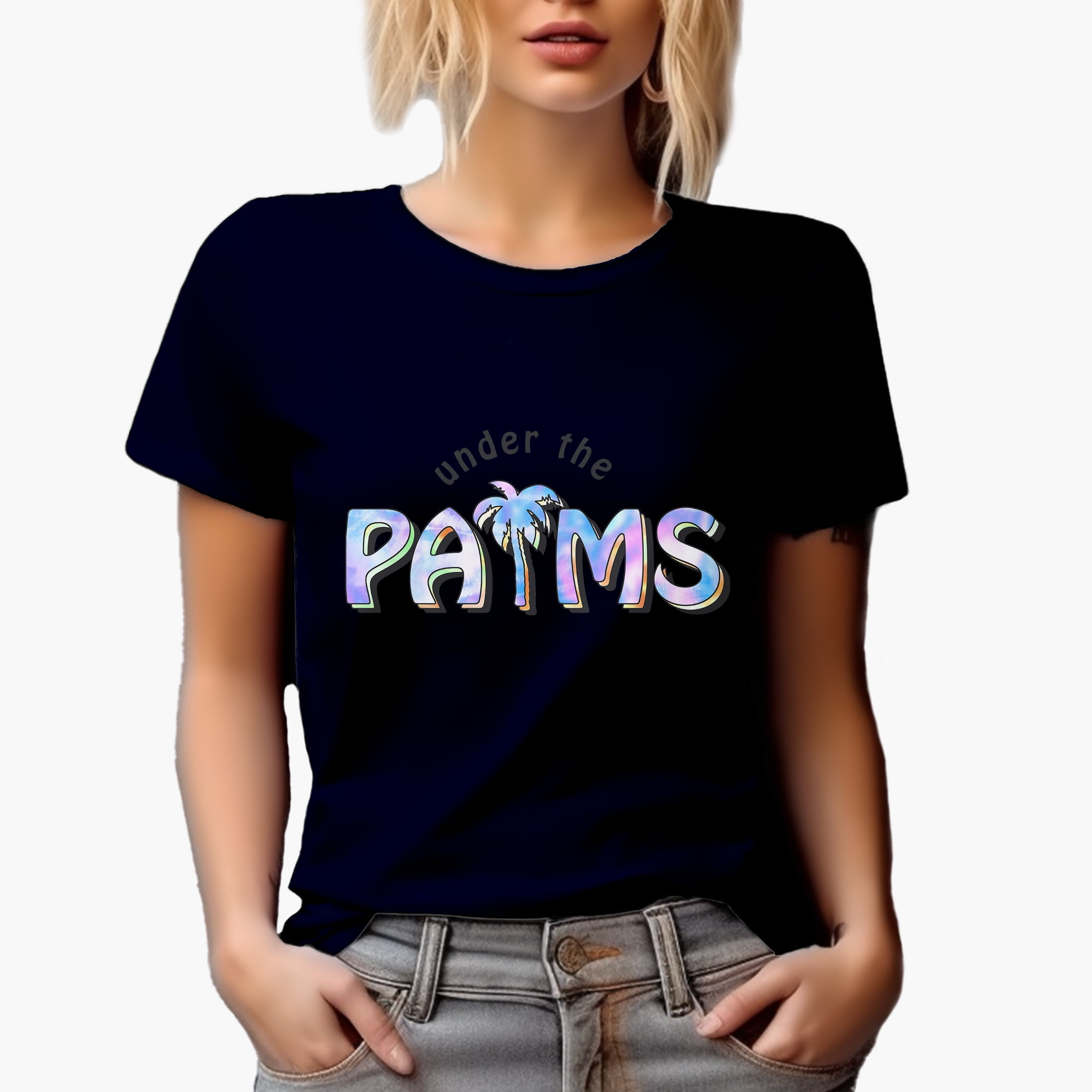 Under the Palms, Palm Tree & Summer Tie Dye Art Merch Gift, Navy Blue T