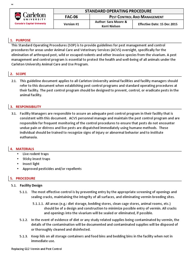 Standard Operating Procedure for pest control Pest Control Wellness