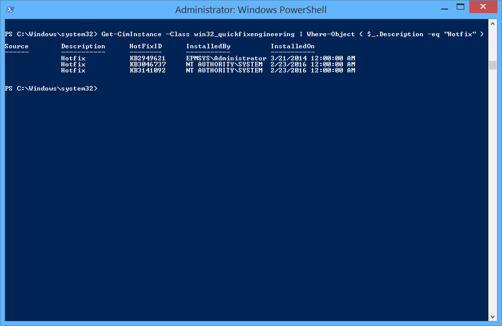 Powershell Get Windows Update Installed Powershell Get Updates Installed Today You will see a list of updates including the hotfix. Press the windows key + x and select windows powershell (admin). Type in wmic qfe list. Check out your detailed windows update history by using powershell or cmd commands. Learn how to use powershell to list the installed updates on a computer running windows in 5 minutes or less. This. Powershell Get Updates Installed Today.
