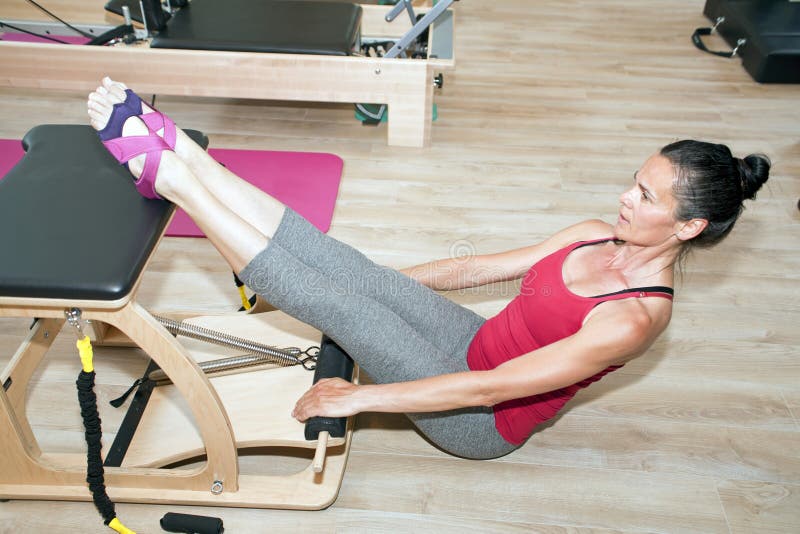 Pilates on chair stock photo. Image of activity, recreation 59164962