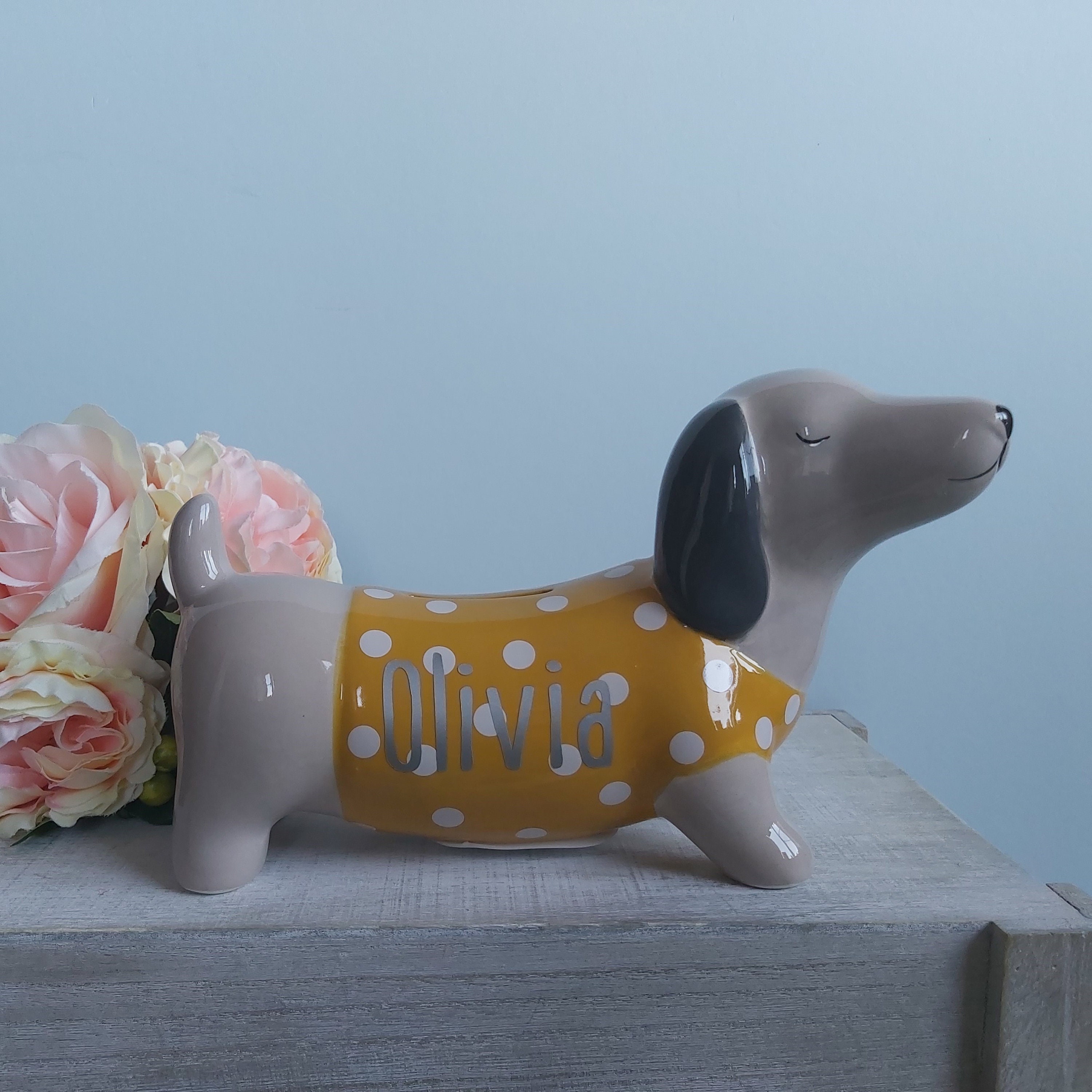 Personalised Dachshund Dog Money Box Piggy Bank Silver Etsy