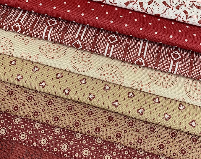 8 Civil War Reproduction Quilt Fabric Fat Quarters REPRO REDS by Sheryl