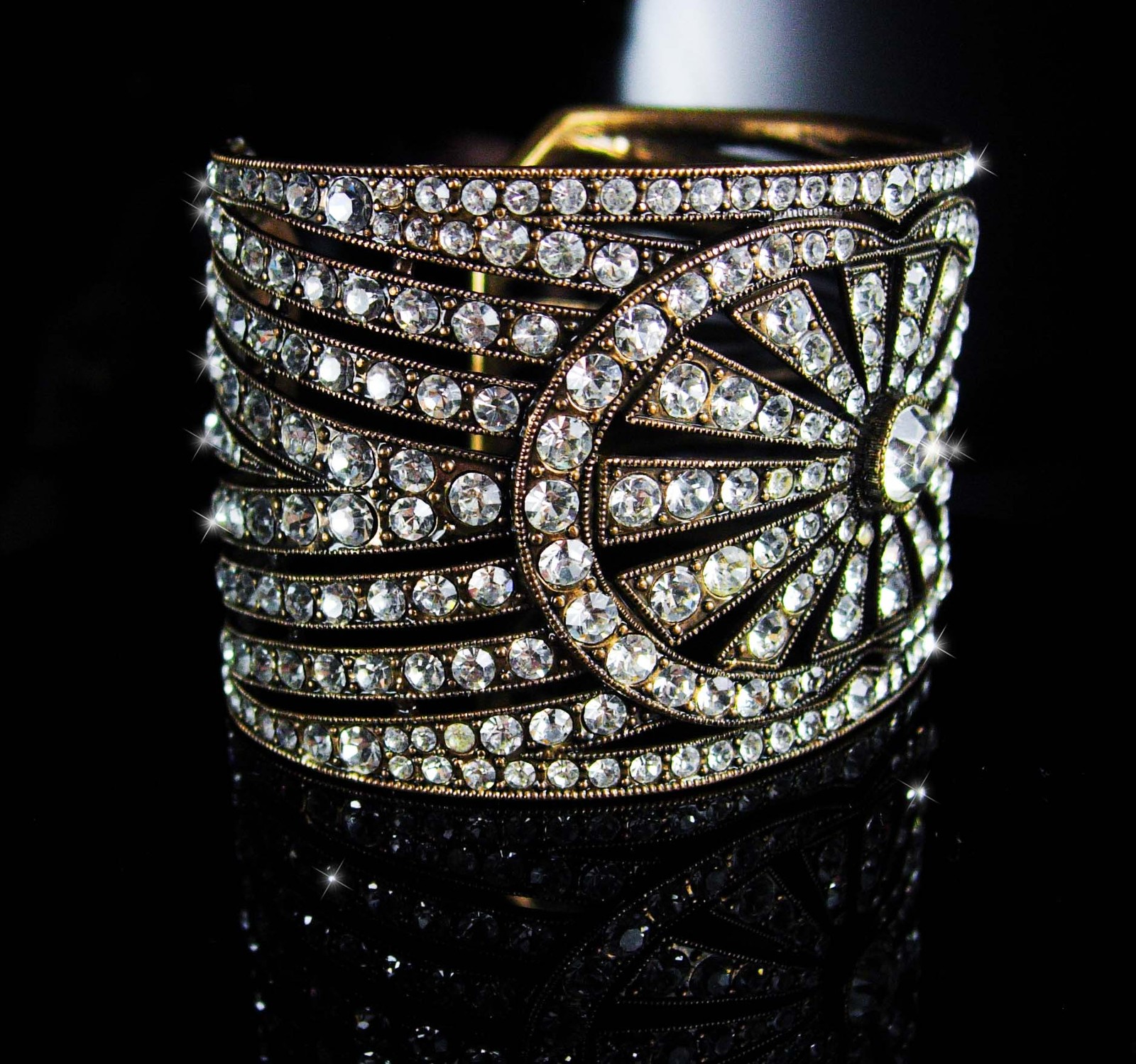 300 Rhinestone Cuff bracelet Art deco design Vintage Art deco Bracelet