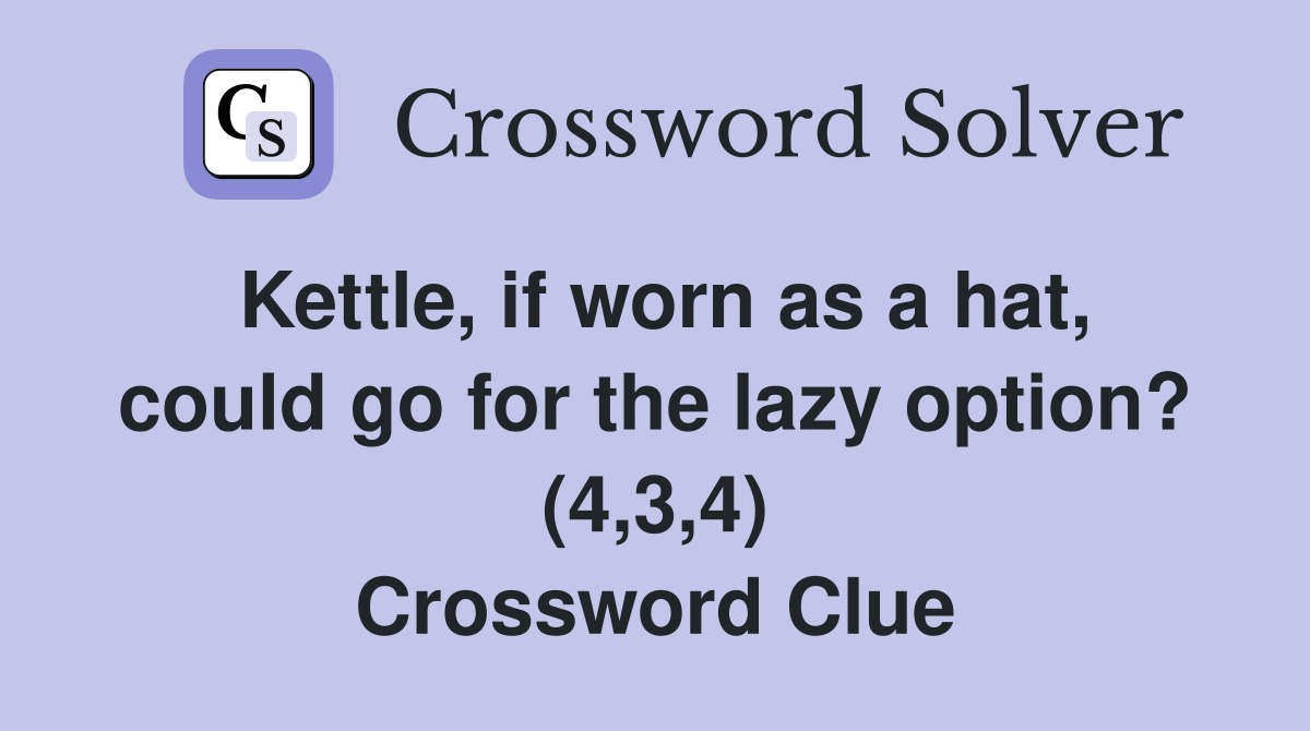 Kettle, if worn as a hat, could go for the lazy option? (4,3,4