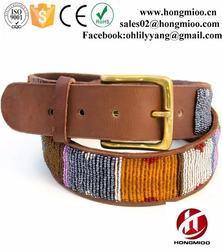 Hot Sale Classic Handmade Genuine Leather Kenyan Custom Beaded Belts