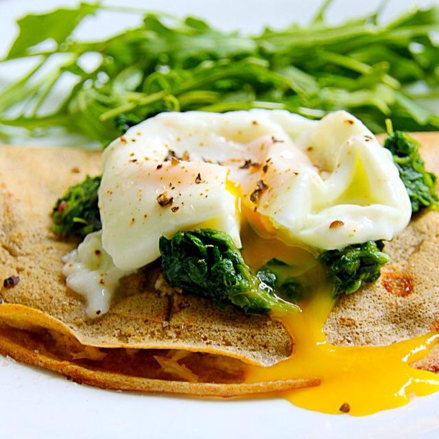 Crab meat mozzarella cheese crepe with spinach poach egg/Missty
