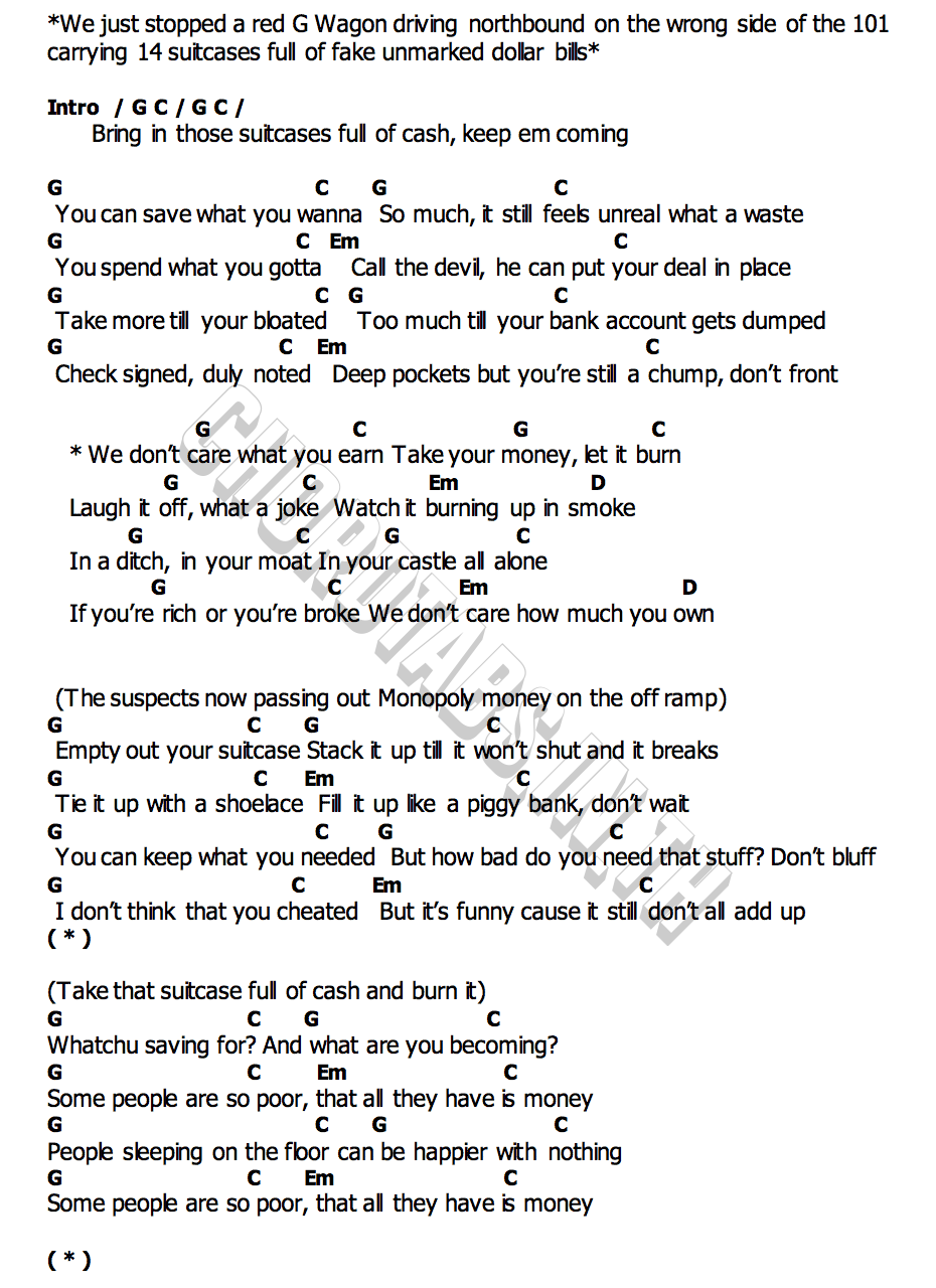 (PDF) Money Chords Guitar Chord Dictionary DOKUMEN.TIPS Suitcase Full Of Cash Chords Suitcase full of cash by oliver tree. You can find and view more than 1,000,000 chords or tabs Learn the proper way of playing suitcase full of cash chords on guitar. Learn to play suitcase full of cash by oliver tree like a pro with our chords! Here's the correct way to play: Suitcase full of cash lyrics: This is. Suitcase Full Of Cash Chords.