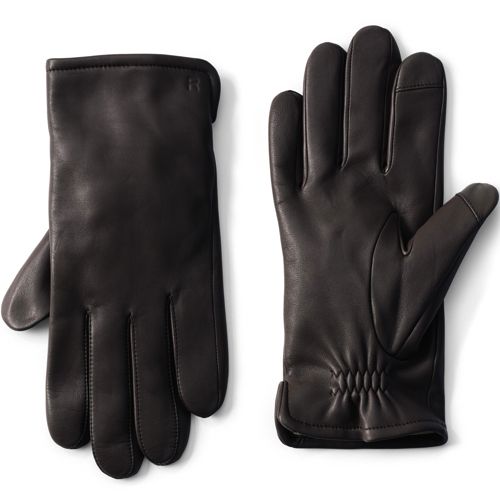 Men's Cashmerelined Touchscreen Leather Gloves Lands' End Men's Cashmere Lined Touchscreen Leather Gloves Leather touchscreen palm enables the use of devices, such as mobile phones, without having to remove gloves. Use your phone without removing your glove with our special touchscreen leather, designed to mimic the touch of a human hand. A classic glove style that's perfect for using your device on the go. Genuine sheepskin leather gloves for men, winter warm touchscreen. Men's Cashmere Lined Touchscreen Leather Gloves.