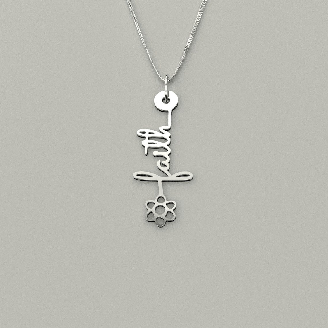 Faith Necklace Faith Flower Jewelry Faith Word Quote Etsy