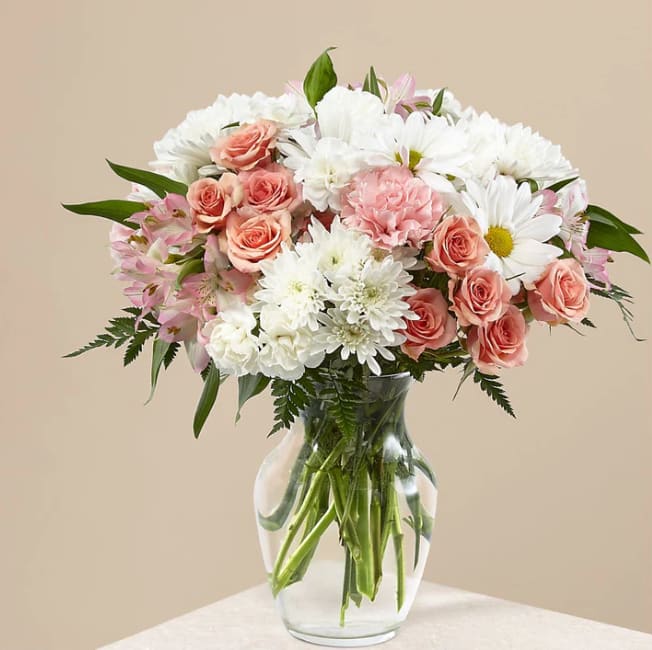 Blush Crush Bouquet Pink and white flowers arranged in a vase.the bouquet pictured reflects our original design for this product. Whoever you're sending this bouquet to, your loved ones are sure to crush hard on these gorgeous pink and. Whoever you're sending this bouquet to, your loved ones are sure to crush hard on these gorgeous pink and white shades. It’s just, a. Blush Crush Bouquet.