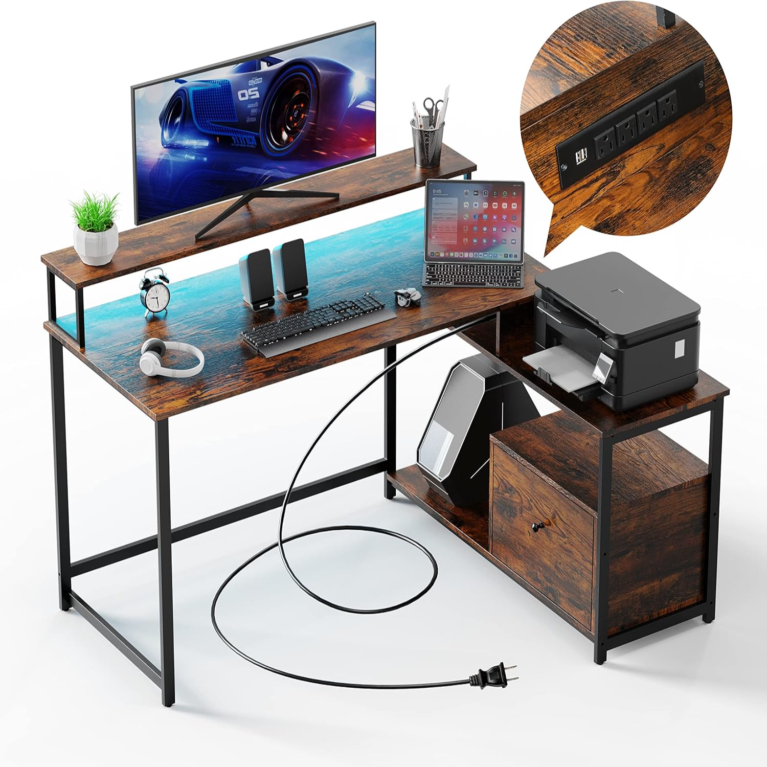 create a productive work environment at home or away with a home office desk from harvey norman. odk l shaped gaming desk with power outlet and led lights, pc gaming table with usb ports, reversible l shape desk with. Explore l shaped desks, corner standing desks, and more! create customised office corners and make the most of the space available in bedrooms or studies with an l shaped desk. 5/5 (1,676) at huntoffice, we offer a diverse range of l shaped office desks to suit different preferences and budgets.