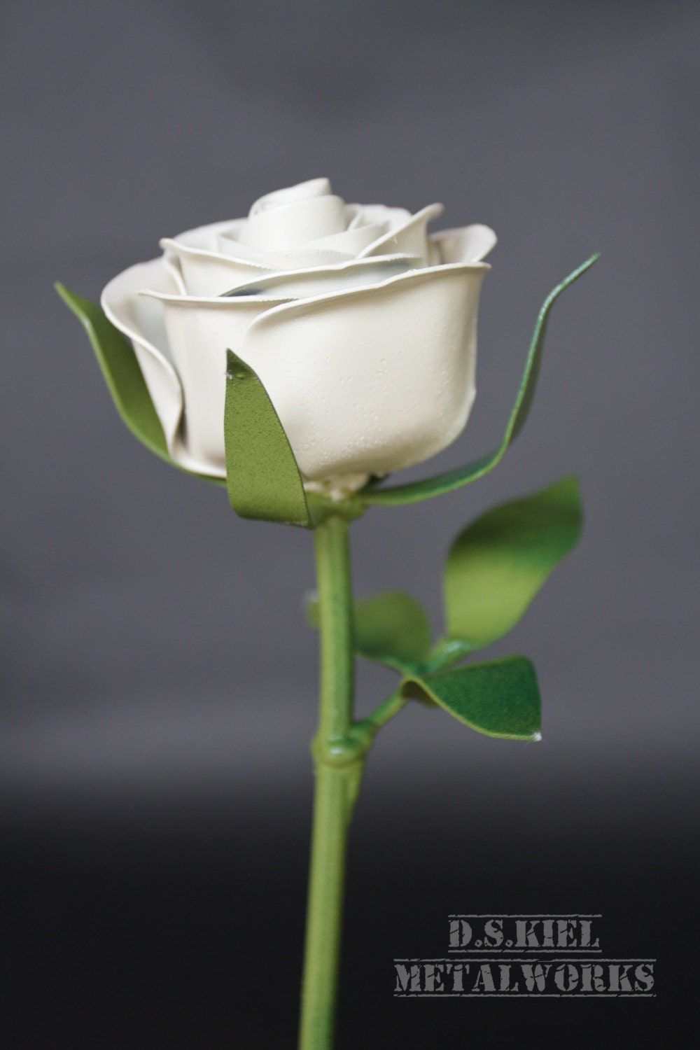 Metal Long Stem White Rose, Graduation, Easter, Metal Rose, Wedding Gift, Metal Flower, White