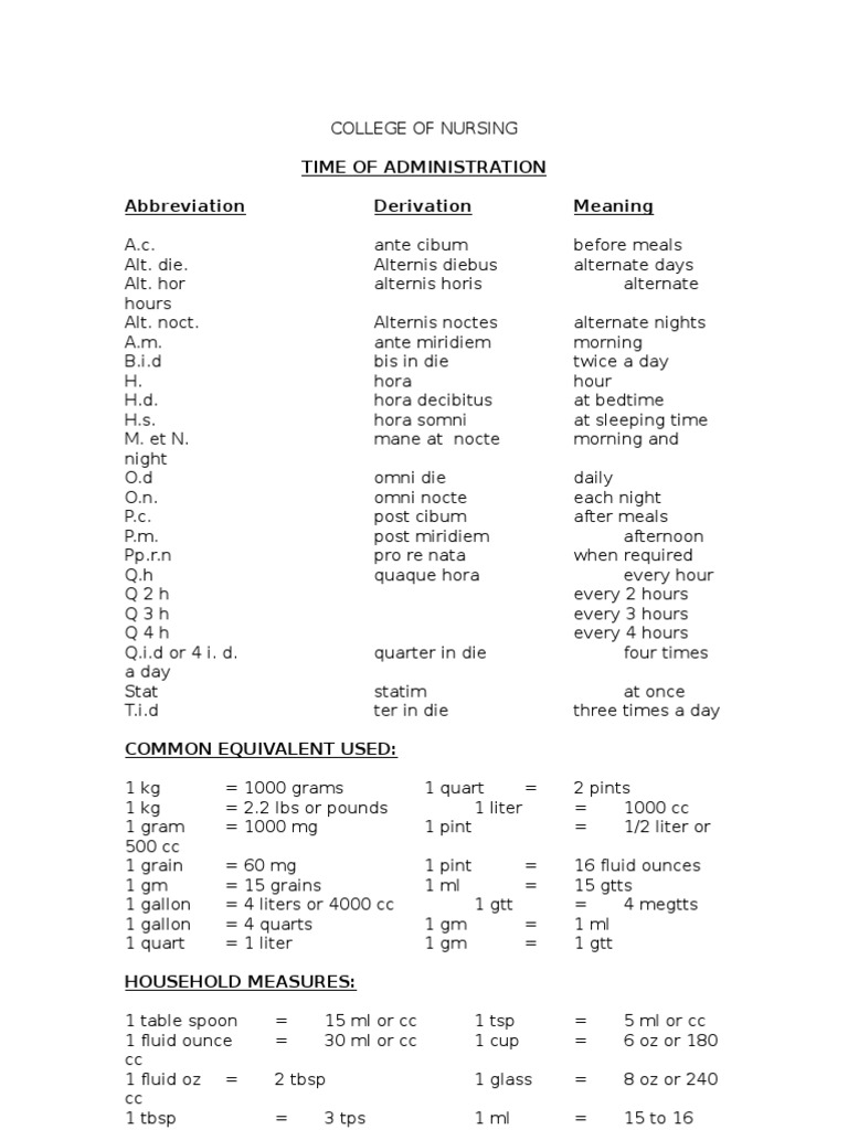 Abbreviation and Drug Formula Grain (Unit) Dose (Biochemistry)