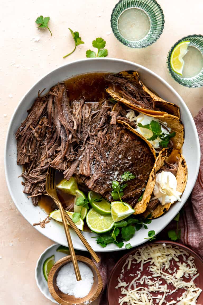 Slow Cooker Brisket Tacos Recipe Foolproof Living How To Shred Brisket For Tacos A beautiful beef brisket gets braised low and slow until it falls apart tender and becomes shredded beef taco meat. If the brisket you know comes smoked with barbecue sauce or simmered with carrots and potatoes, these brisket tacos will blow you away. Garnish these beef brisket tacos with your favorite toppings for a fun and. Brisket tacos are tender,. How To Shred Brisket For Tacos.