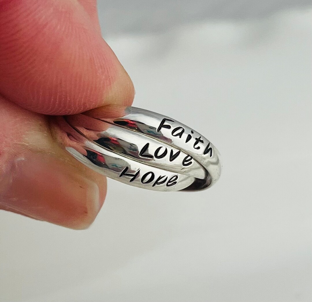 FAITH HOPE & LOVE Ring .925 Plata de ley Envío rápido Etsy Faith Love Hope Ring Vous y trouverez les meilleures pièces uniques ou personnalisées de nos boutiques. Whenever you're feeling in the dumps and life gets tough, look at your ring and remember. Let this ring be a simple, meaningful piece to wear. Check out our faith hope love ring selection for the very best in unique or custom, handmade pieces from our rings shops.. Faith Love Hope Ring.