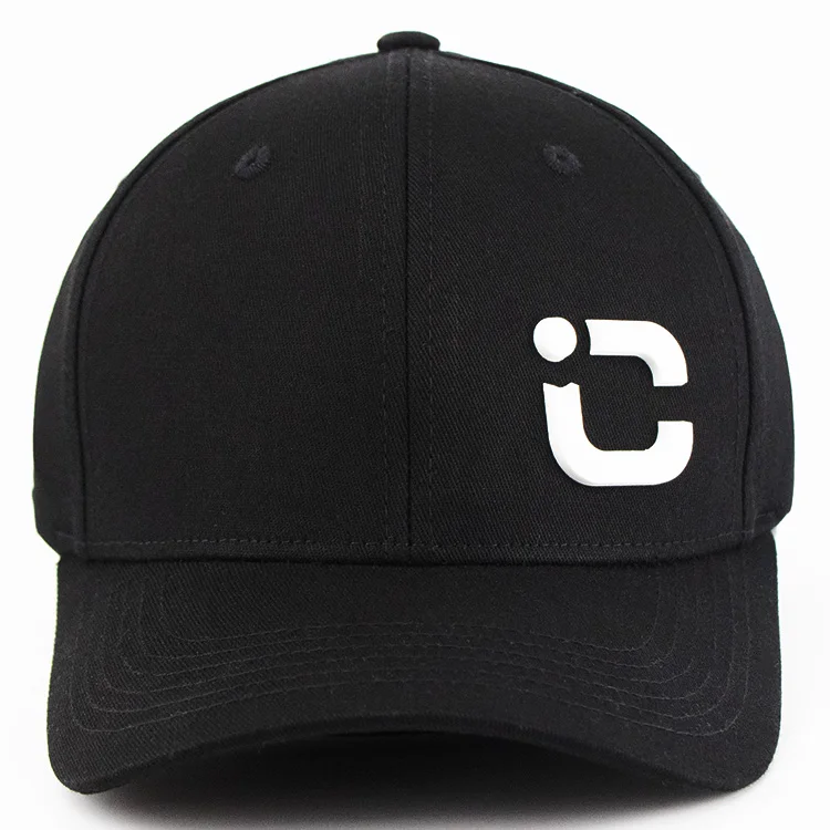 Rubber Patch Black Cotton 6 Panel Adjustable Custom Fitted Baseball Cap