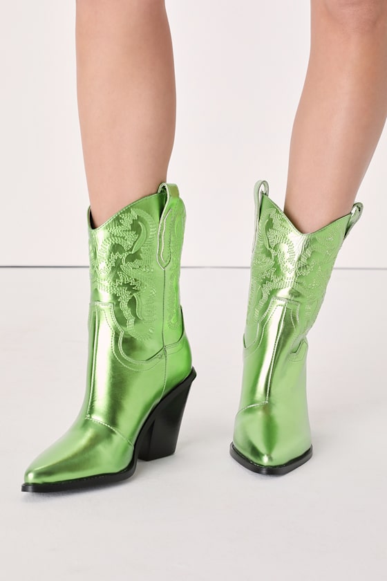 Billini Sergio Green Metallic Cowboy Boots SlipOn Boots Lulus
