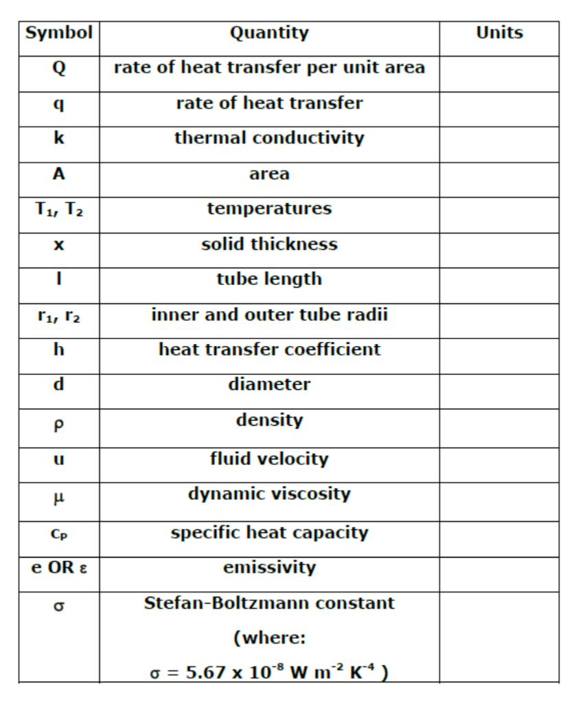 Solved Units Symbol Q Quantity rate of heat transfer per
