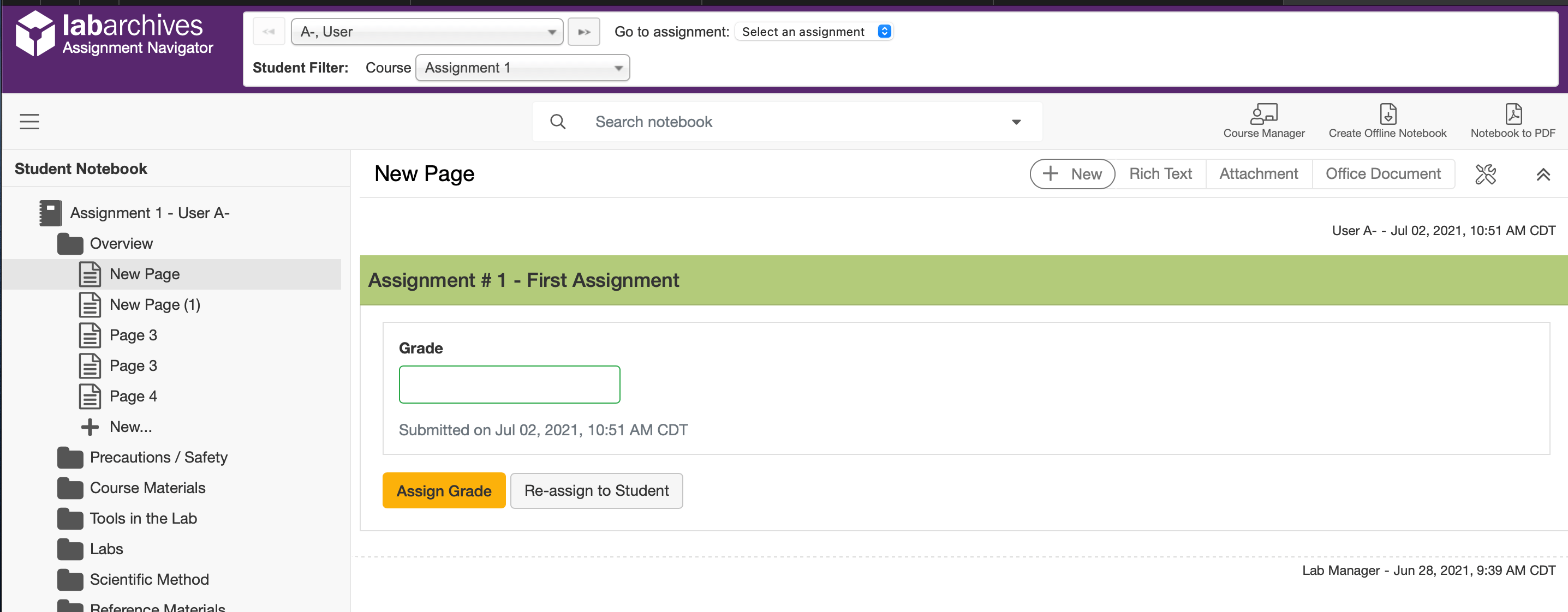 Grading with Blackboard LabArchives