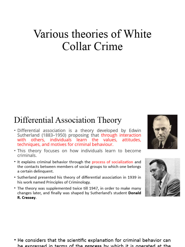 By understanding that violent behavior. It can be defined as a process by which individuals come to have differential access to. It explains that people learn to become offenders from their environment. Differential association is a crime predictive theory. Differential association is defined as a theory that highlights the importance of learning criminal behavior through interactions with peers,. Mckay institute for juvenile research and. Differential association and crime prevention: With his theory of differential association, sutherland attempted to identify universal mechanisms that explain the genesis of crime regardless of the specific. The differential association is a theory proposed by sutherland in 1939. Problems of utilization henry d.