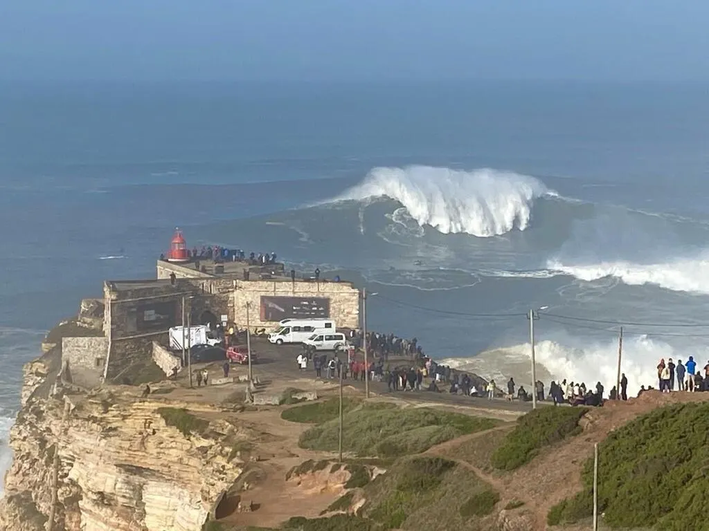 nazare, portugal 7 de noviembre de 2022 personas viendo las grandes Nazare Portugal Waves the waters off nazaré, portugal, cooperate in a big way. nazare is a portuguese town where towering waves, some 24 metres high, crash to shore. learn how nazaré, portugal, is home to the world's largest waves ever surfed, thanks to its underwater canyon and offshore winds. Find out when and where to see them, and get ready. Nazare Portugal Waves.