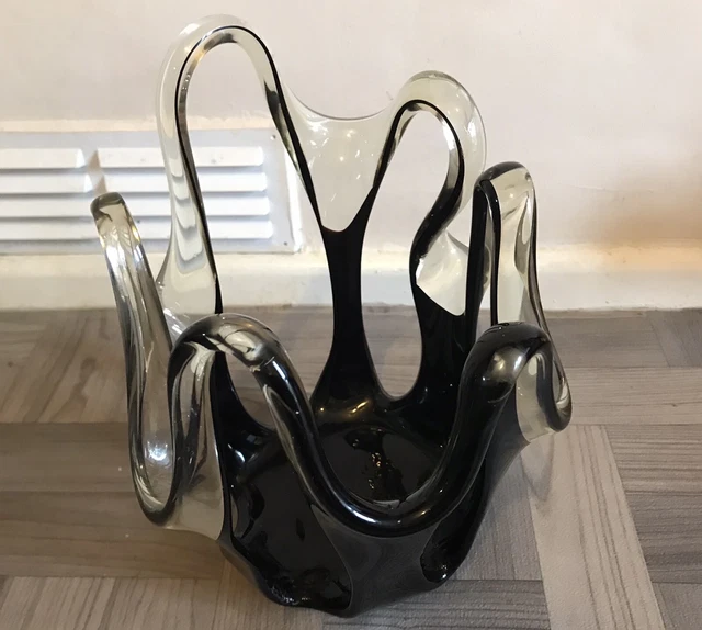 NEWGRANGE LIVING BLACK Freeform Art Glass Candle Holder Used £14.99