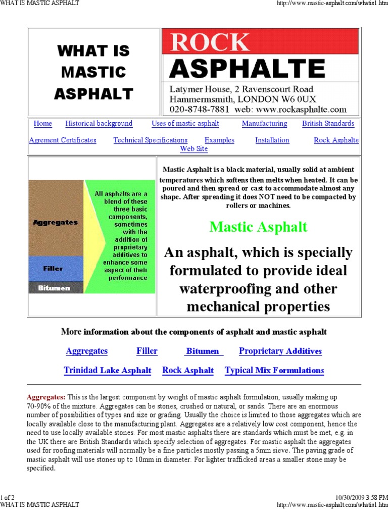 Mastic Asphalt Successfully Tested to New European Fire Standard Mastic Asphalt Wikipedia Mastic asphalt is one of the oldest construction products, and the oldest waterproofing membrane system, in use for centuries. Mastic asphalt is a mixture of asphalt and fine mineral material in proportions so that it may be poured hot in place then. It consists of a graded limestone aggregate, bound together with asphaltic cement (i.e. Bitumen), heated to 210 degrees. Mastic Asphalt Wikipedia.