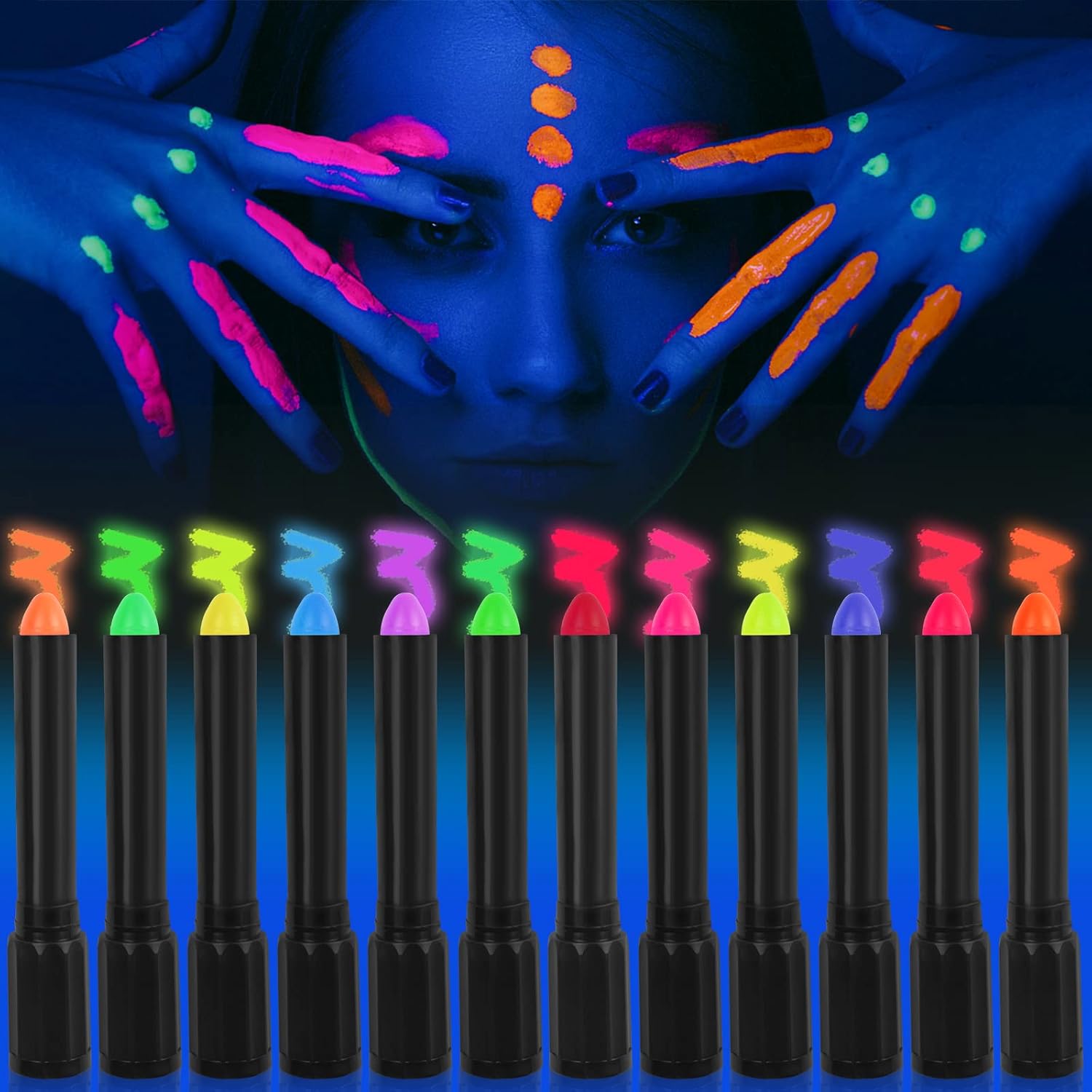 Body Paint Black Light This set comes with eight bottles that all feature a different glowing color to achieve the exact vibe you’re looking for. Neon nights uv body paint set. These paints have a very intense glow. Prices taken at time of publishing. Wiueurtly face painting brush neon face and body paint largest kit black light glow in the dark makeup set fluorescent.. Body Paint Black Light.
