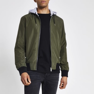 Khaki hooded bomber jacket River Island