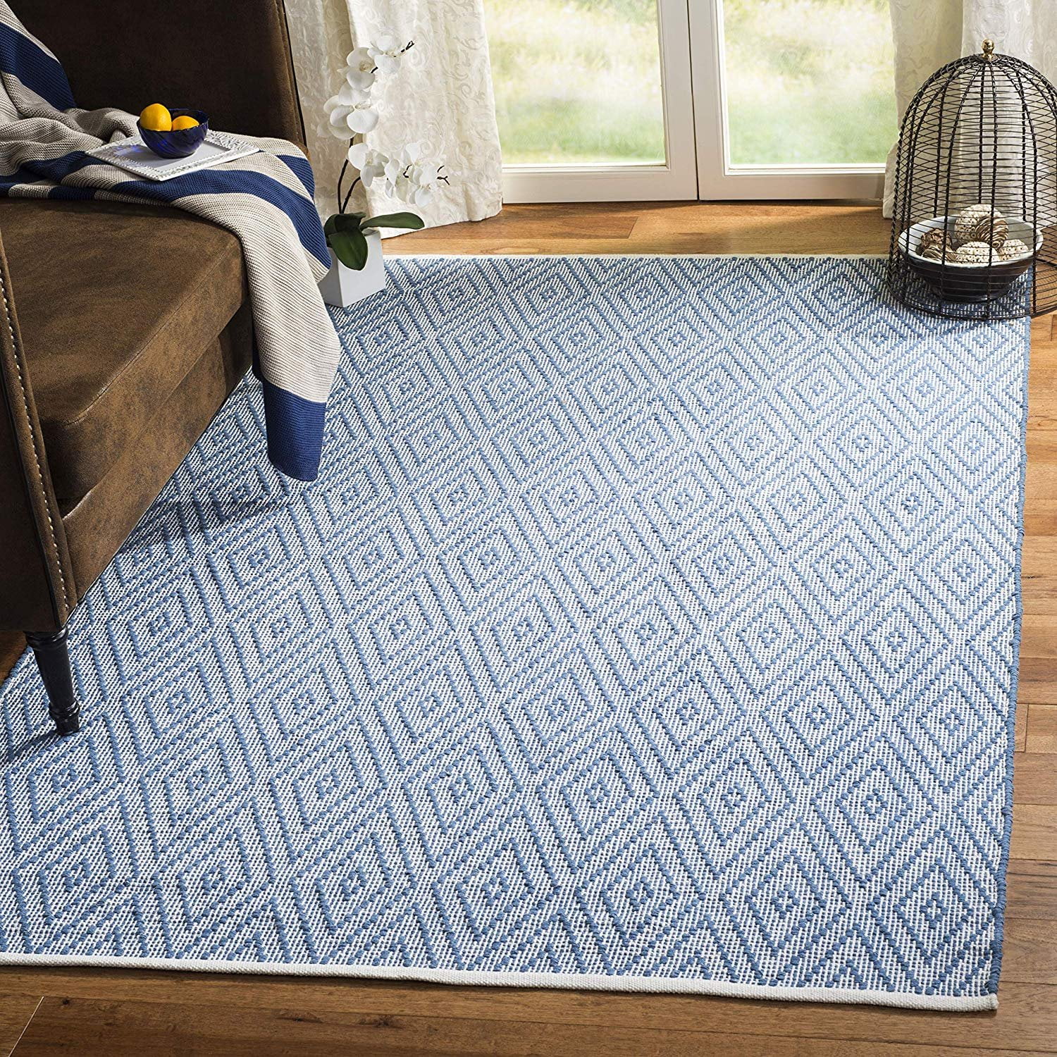 Safavieh Montauk Collection MTK811B Handmade Flatweave Blue and Ivory Cotton Area Rug (8' x 10