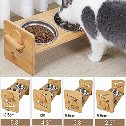 Raised Dog Bowl for Small Dogs and Cats,Adjustable Bamboo Raised Dog