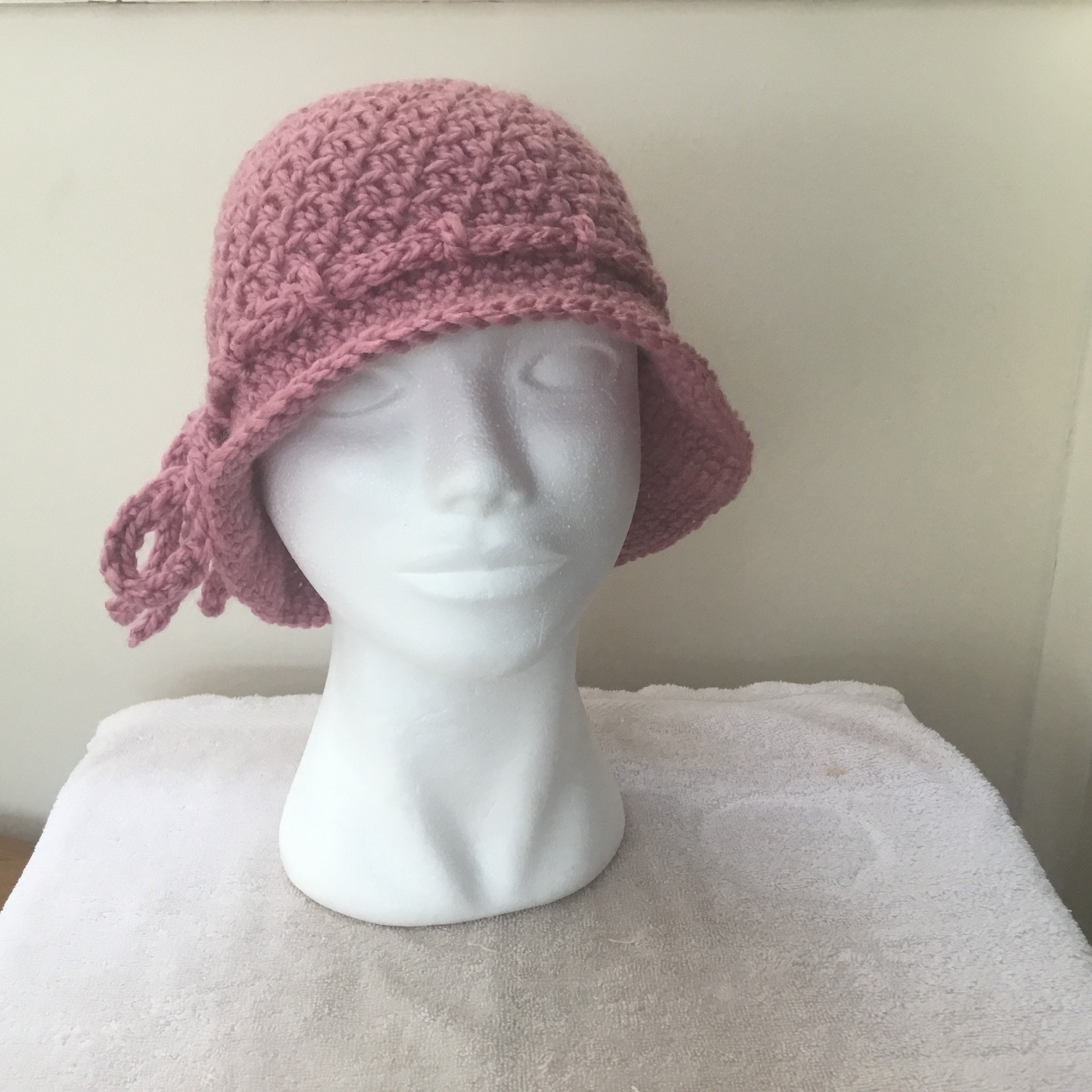 Ladies Cloche Hat Beanie Hat bow Hand Crochet Rolled Brim Etsy