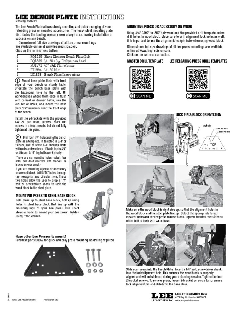 Lee Bench Plate Kit . The lee reloading bench plate is the perfect accessory for the reloader looking to quickly. Lee bench plate allows for quick press removal without unbolting from bench. Includes 1 steel base block that fits all current lee metallic presses. Lee bench plate allows for quick press removal without unbolting from bench. Includes 1 steel base block that fits all current lee metallic. Includes 1 steel base block that fits all current lee metallic presses. Includes 1 steel base block that fits all current lee metallic. Special elevator bolt hardware included. Lee bench plate allows for quick press removal without unbolting from bench. Lee bench plate allows for quick press removal without unbolting from bench. Universal 5 tube case feed magazine parts ;