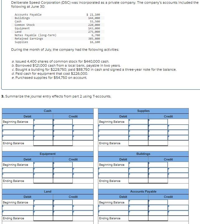 Solved Deliberate Speed Corporation (DSC) was incorporated