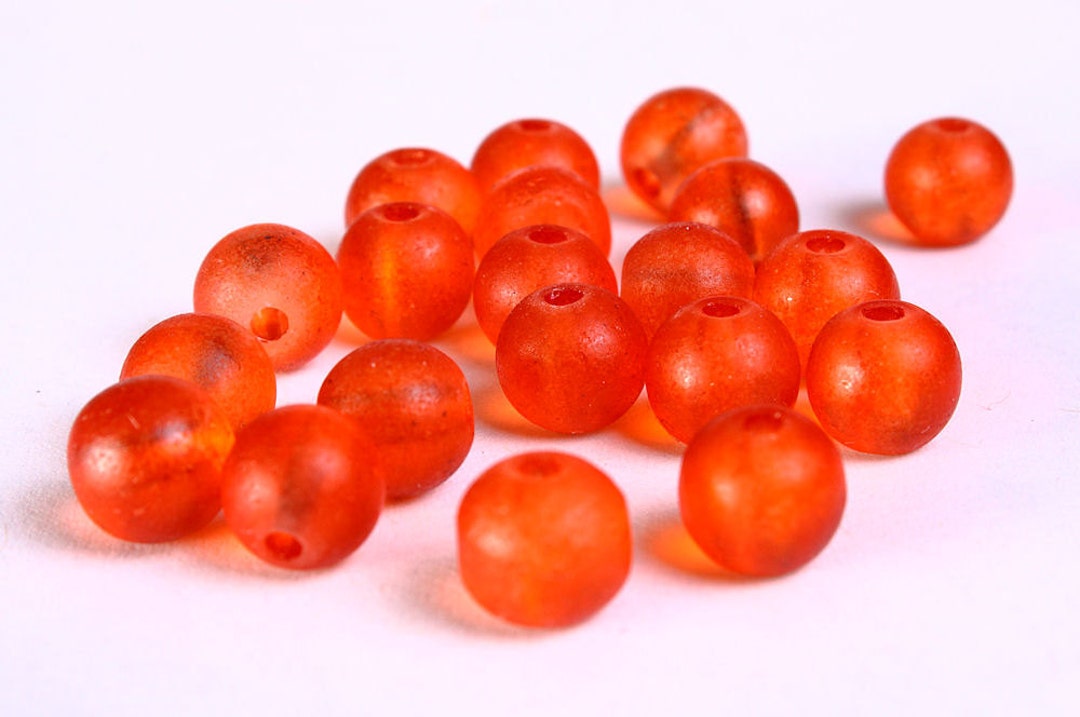 8mm Orange Glass Beads 8mm Frosted Beads 8mm Round Glass Etsy