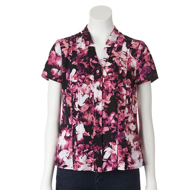 Petite Croft & Barrow® Floral Pleated Blouse