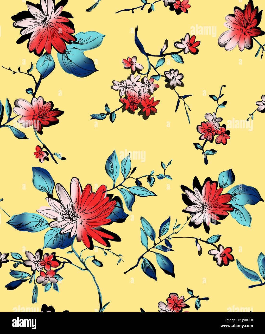 Floral pattern on yellow background Stock Photo Alamy