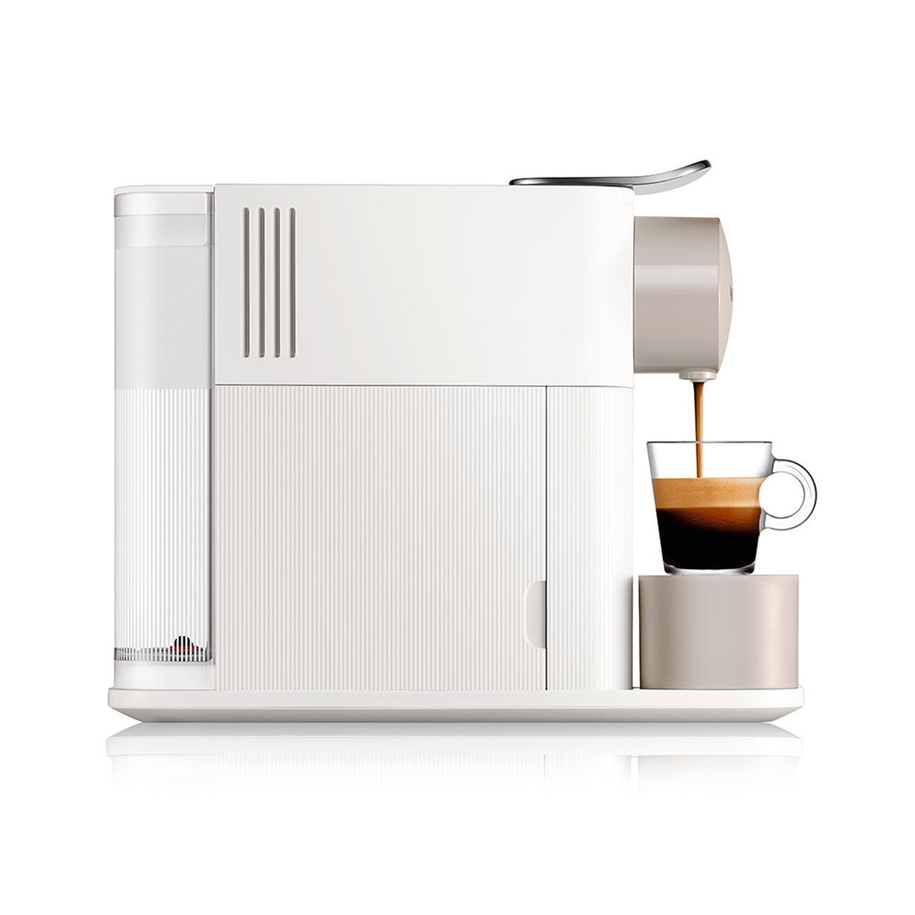 Nespresso White Machine Indulge from the comfort of home, with the vertuo lattissima from nespresso, by de'longhi. Machine for £199 (rrp £279) with nespresso plus subscription. A smart automatic coffee machine that reads each capsule's unique barcode and tailors all brewing parameters to deliver a bespoke brew. Enjoy rich, creamy coffee any time with the nespresso by de'longhi lattissima one en510.w coffee machine.. Nespresso White Machine.