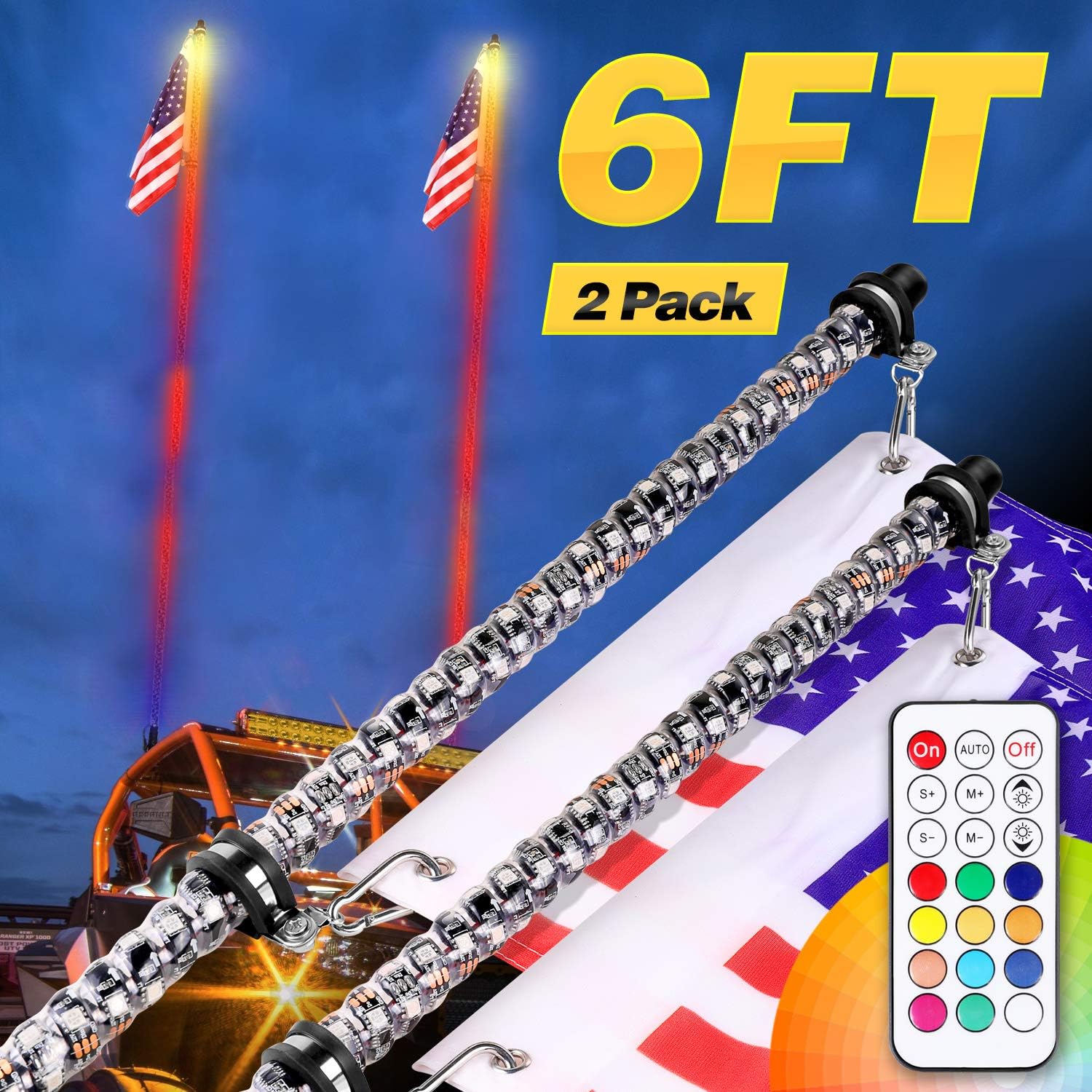 LED Whip Lights, TeochewLED 2 Pack 6 Feet Lighted Whips