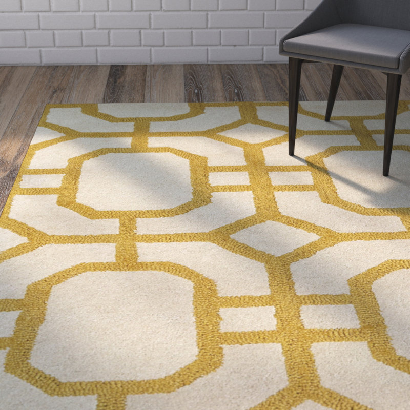 Brayden Studio® Rentz Handmade Wool Ivory/Yellow Rug Wayfair