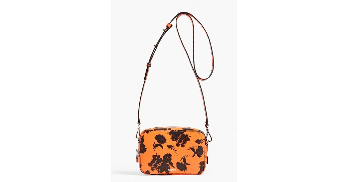 Ganni Floralprint Texturedleather Shoulder Bag in Orange Lyst