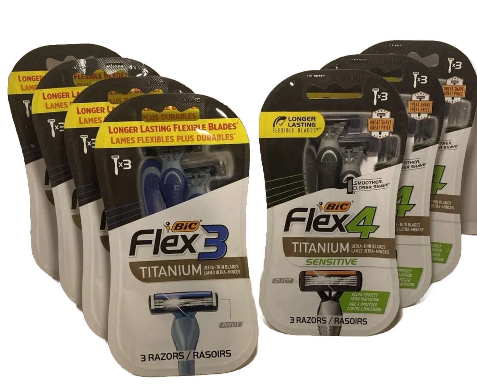 7”LOT” Flex 4 Titanium Sensitive & Flex 3 Titanium Disposable Razors